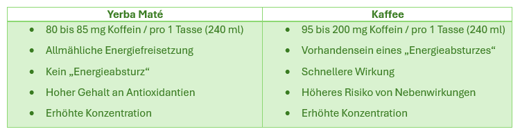 Schnellübersicht: Yerba Maté vs. Kaffee